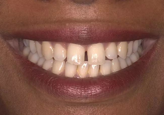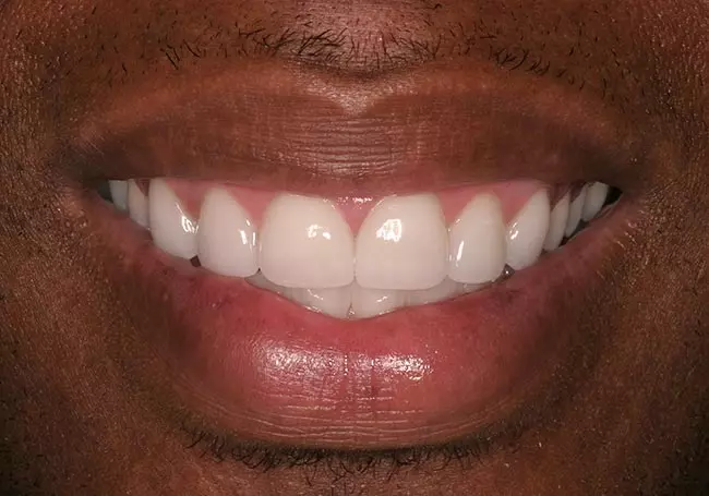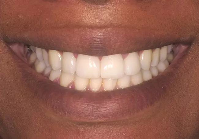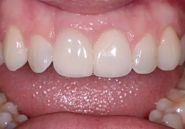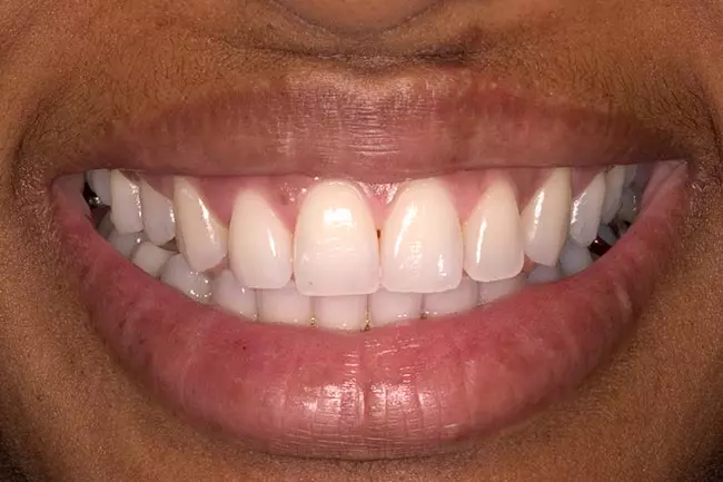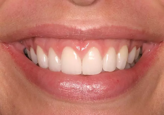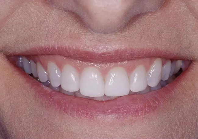 Small teeth with spaces and “excessive gum show” were the problems affecting this smile. A Cosmetic Gum Lift followed by a Smile Design and eight Porcelain Veneers solved these problems and created this youthful and healthy-looking smile.