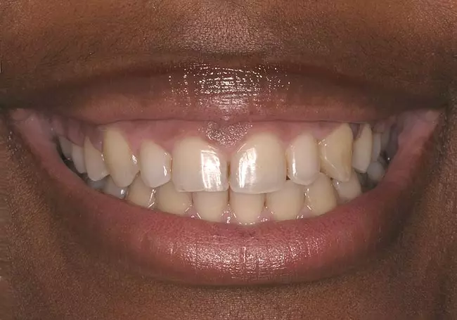 Small, dark, and uneven teeth were the problems affecting this smile. Zoom Whitening along with a Smile Design and six Porcelain Veneers on the top and Direct Chairside Bonding on the bottom solved these problems and made this dramatic difference.