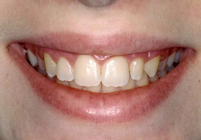 This youthful smile had excessive and uneven gum tissue, yellow teeth, and an underdeveloped lateral incisor, all detracting from its full potential. Utilizing Cosmetic Gum Recontouring, Home Whitening, and a single Porcelain Crown, this smile was enhanced to its full potential.